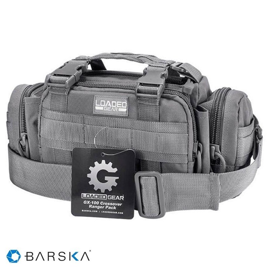 Barska Loaded Gear GX-100 Crossover Komando Çantası içerisinde bulunan malzemeleri güvende ve düzenli bir şekilde tutarken, en ağır kullanımlara bile dayanabilecek şekilde özel olarak tasarlanmıştır. İlk yardım seti, fotoğraf makinesi çantası, taktikal ürünler, elektronik ürünler ve diğer aksesuarlar için oldukça uygundur. Ayarlanabilir kayış omuz ve bel çevresinde kullanılabilir. GX-100 Crossover Komando çantası Molle (modüler hafif yük taşıma sistemi) sistemleri ile uyumludur ve daha büyük sırt çantalarına takılabilir. Sıkı balistik naylon yapısı zorlu koşullar altında yıllarca kullanıma olanak sağlamaktadır. Loaded GX Taktikal sırt çantaları içerisindeki içeriği engebeli ve sarsıntılı alanlarda korumak için özel olarak tasarlanmıştır. Ağır kullanım ürünlerine yıllarca kolaylıkla dayanabilir.