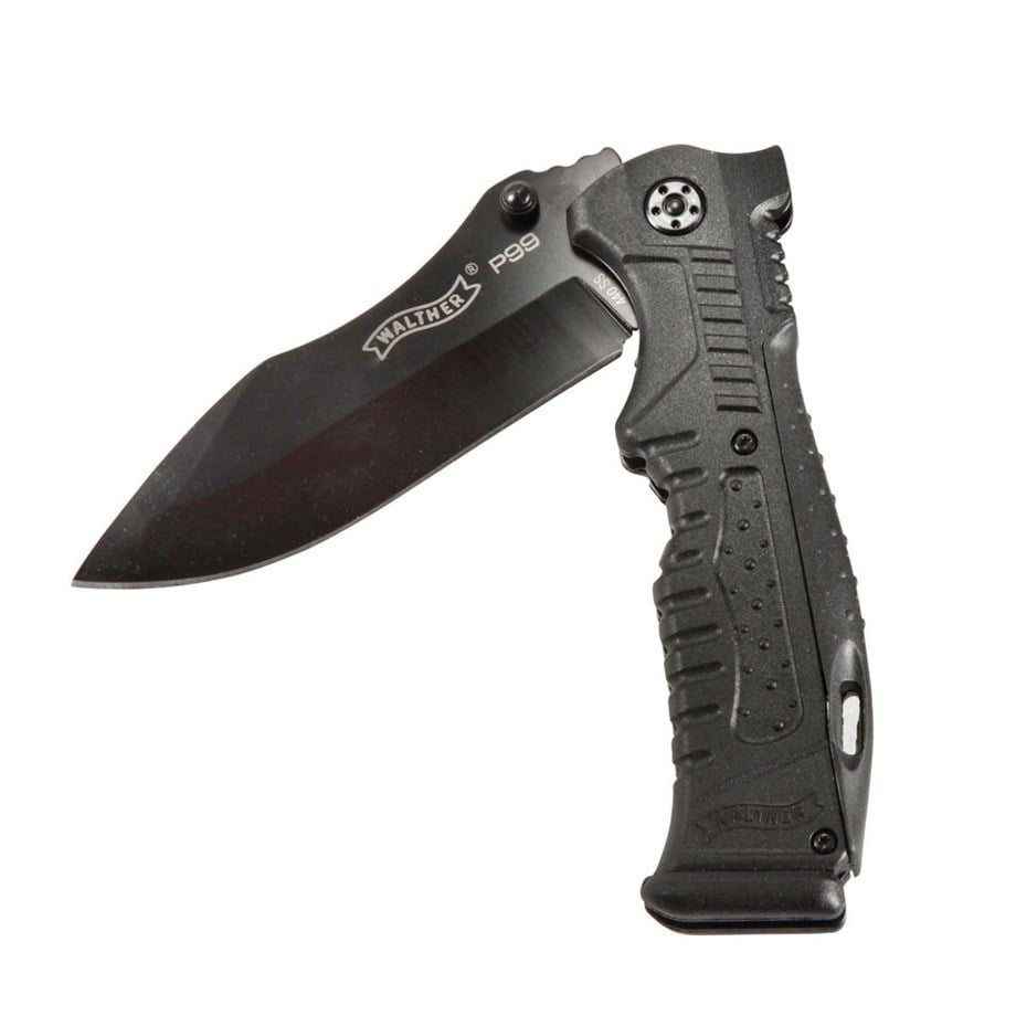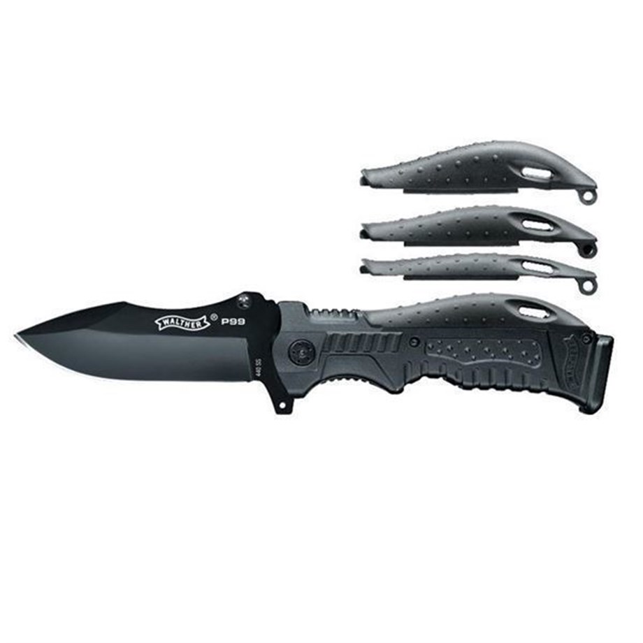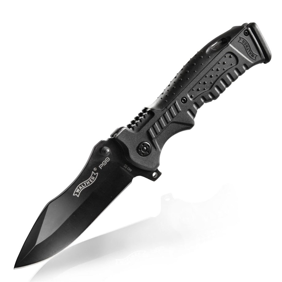 Walther P99 bıçağı etkileyici bir maket bıçağıdır. Şu anda Walther tarafından sunulan diğer bıçaklar gibi, ünlü bir Walther ateşli silahından ödünç alınmış tasarım unsurlarına sahiptir. 440 paslanmaz çelikten yapılmış devasa mızrak uçlu bıçak, siyah bir kaplamaya ve arkada bir oyuğa sahiptir, bu da onu gerçek bir göz alıcı yapar. Başparmağa iyi destek sağlamak için bıçağın arkasındaki oluk sap üzerinde devam eder. P99 tabanca gibi, bu bıçağın, farklı el boyutlarına ayarlanmasına izin veren değiştirilebilir bir sap sırtı vardır. Güvenilir kilidine ek olarak, P99 bıçağında kolay açma ve parmak koruması için bir aparat vardır.